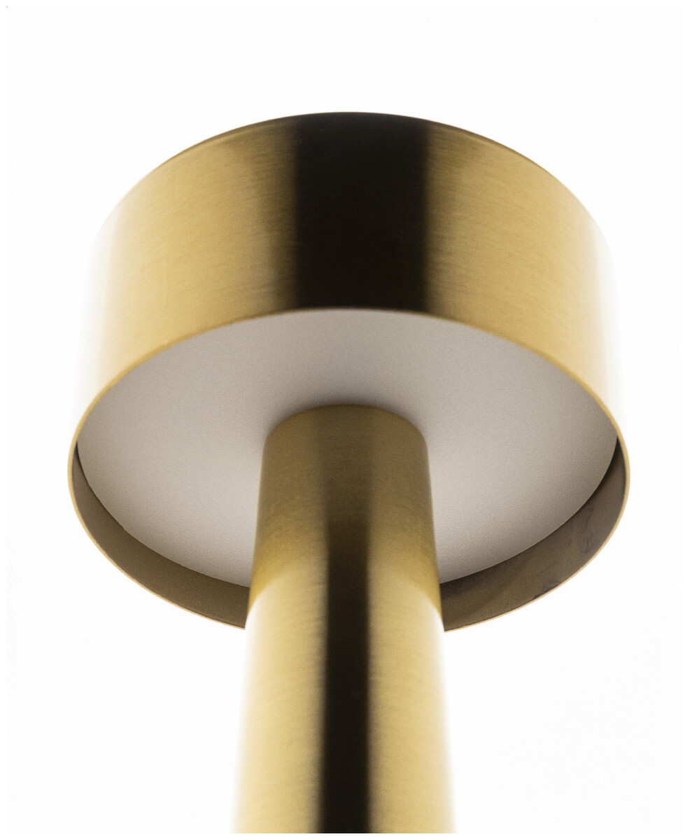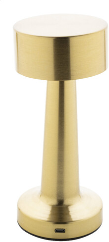 Kovová stolní lampa se zlatou povrchovou úpravou, 24 LED diodami, nastavitelným jasem a dobíjecí baterií USB 800 mAh. S režimy teplého, přirozeného a studeného světla. Včetně nabíjecího kabelu USB.
