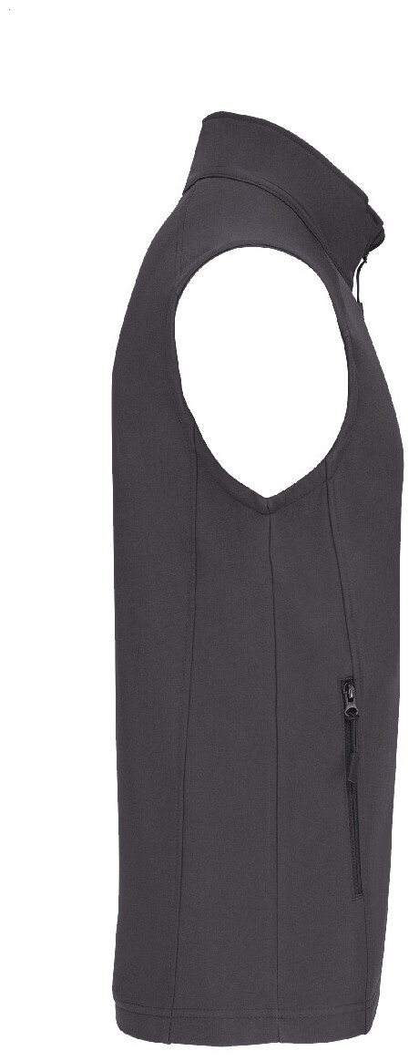 Třívrstvá, prodyšná, větru a voděodolná softshellová vesta na tělo se zipem a náprsními a bočními kapsami na zip. S prodyšnou střední vrstvou a vnitřní vrstvou z micro polar fleecu. Materiál: 95 % polyester a 5 % elastan, 300 g/m2. Výrobek značky Kariban.