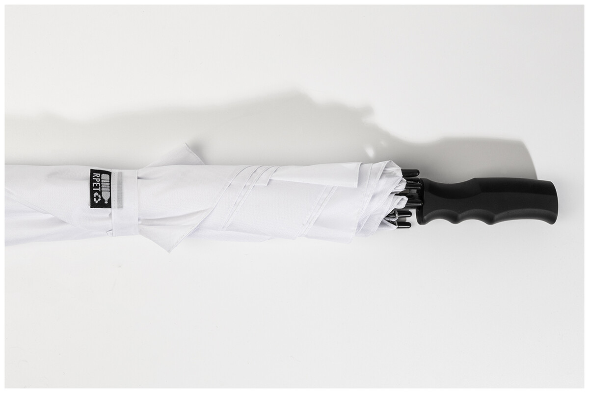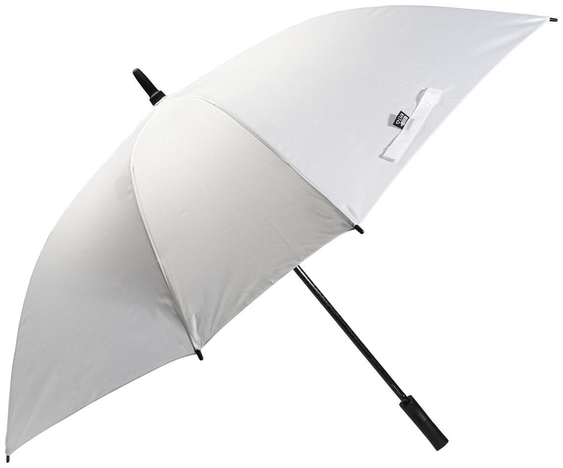 Velký automatický větruodolný čtvercový deštník s celolaminátovou tyčí a rámem, pogumovanou ABS rukojetí. 190T RPET pongee. S charakteristickým RPET štítkem.