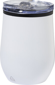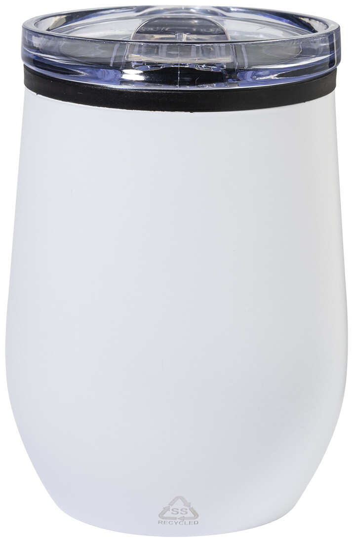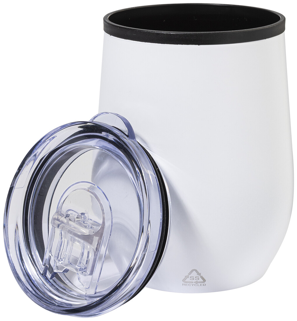 Dvoustěnný termo hrnek z recyklované nerezové oceli s vnitřní stranou z PP a víčkem z PS. 350 ml.
