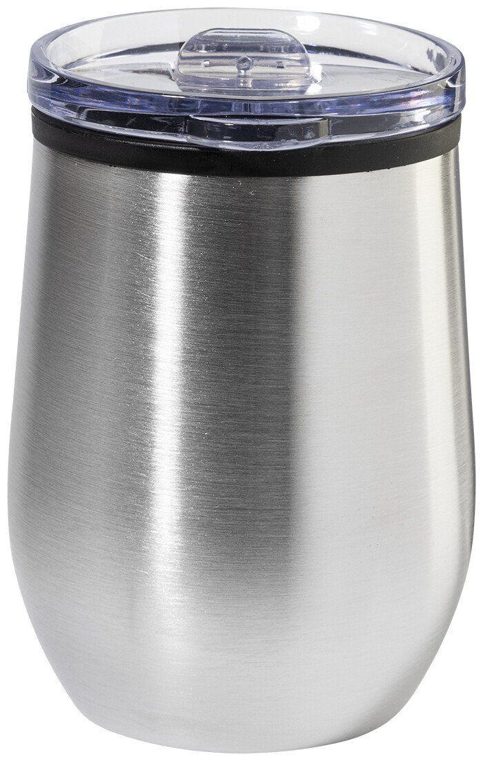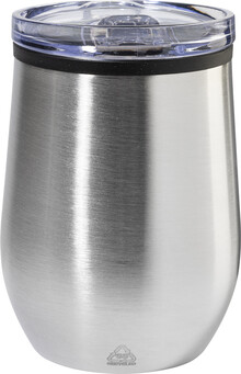Dvoustěnný termo hrnek z recyklované nerezové oceli s vnitřní stranou z PP a víčkem z PS. 350 ml.