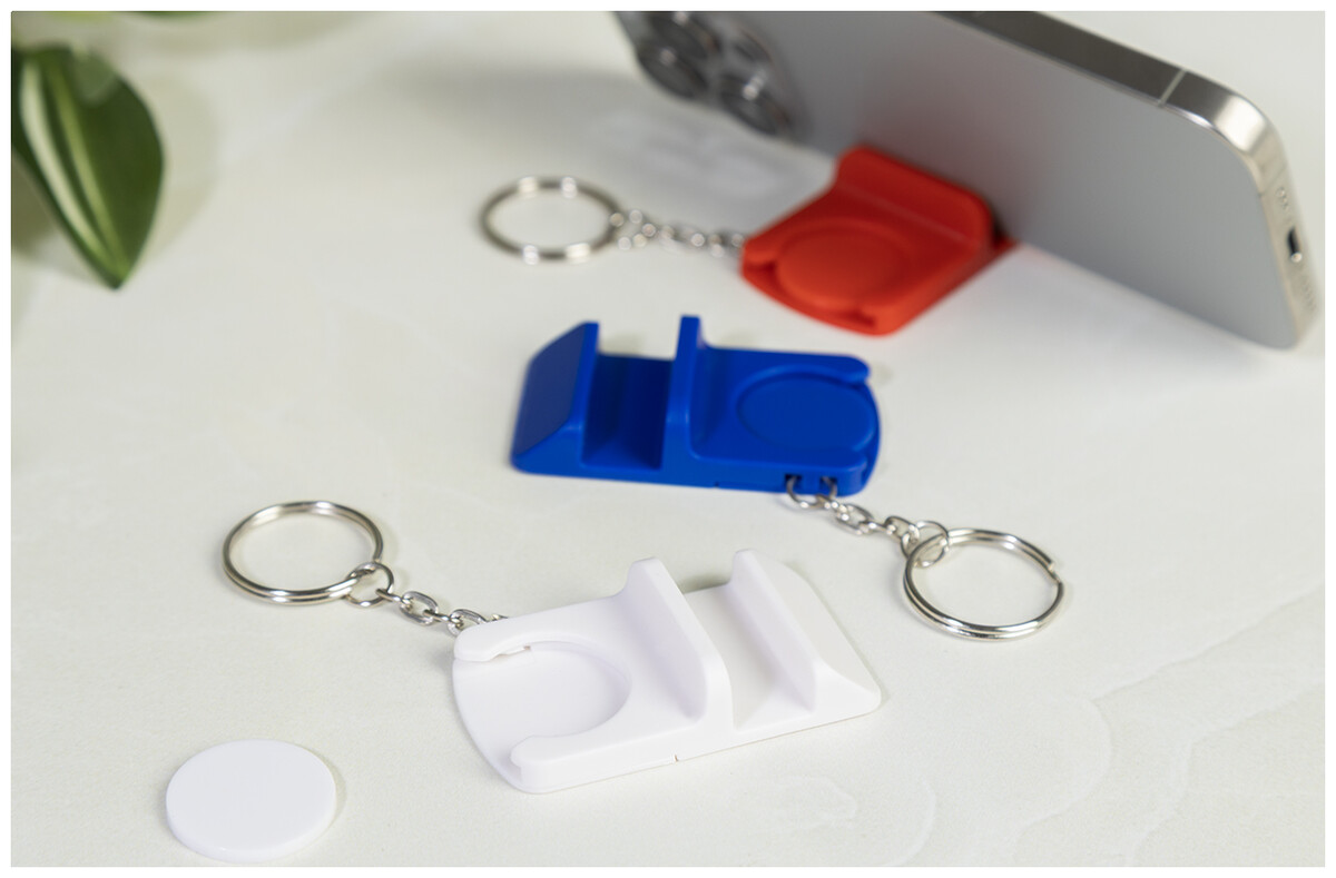 Přívěsek klíče se žetonem do košíku z recyklovaného ABS materiálu s držákem na mobilní telefon. Velikost mince: ø23×2 mm.