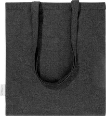 Nákupní taška s dlouhými uchy ze 70 % recyklované bavlny a 30 % RPET polyesteru, 140 g/m2. S výraznou etiketou o recyklované bavlně.