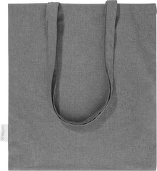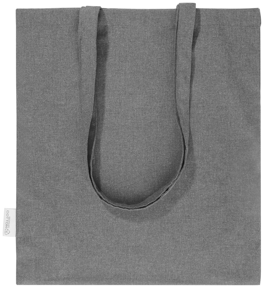 Nákupní taška s dlouhými uchy ze 70 % recyklované bavlny a 30 % RPET polyesteru, 140 g/m2. S výraznou etiketou o recyklované bavlně.