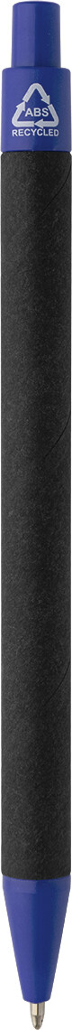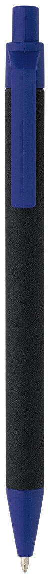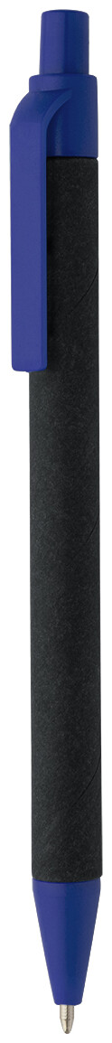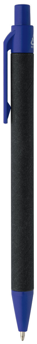 Kuličkové pero z recyklovaného papíru s černým tělem a recyklovanými ABS díly. S modrou náplní.