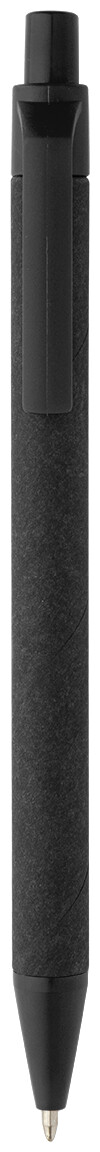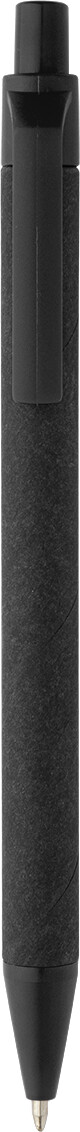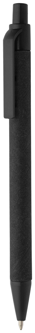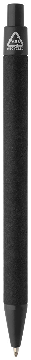 Kuličkové pero z recyklovaného papíru s černým tělem a recyklovanými ABS díly. S modrou náplní.