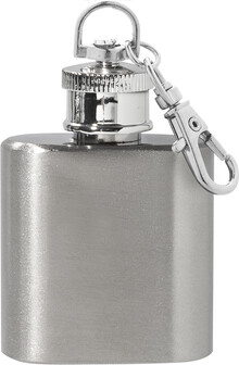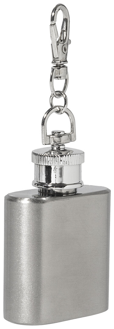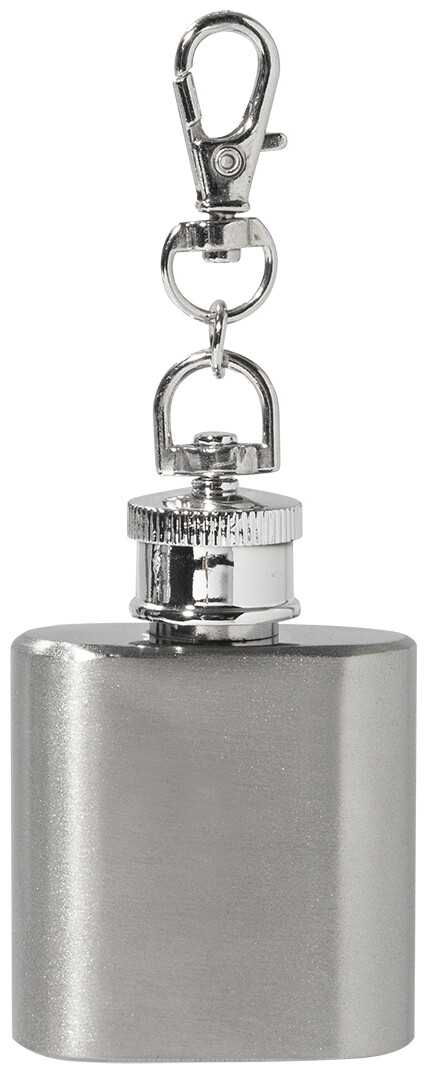 Miniaturní butylka z recyklované nerezové oceli s karabinou na klíče. 30 ml.