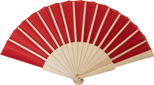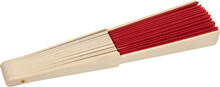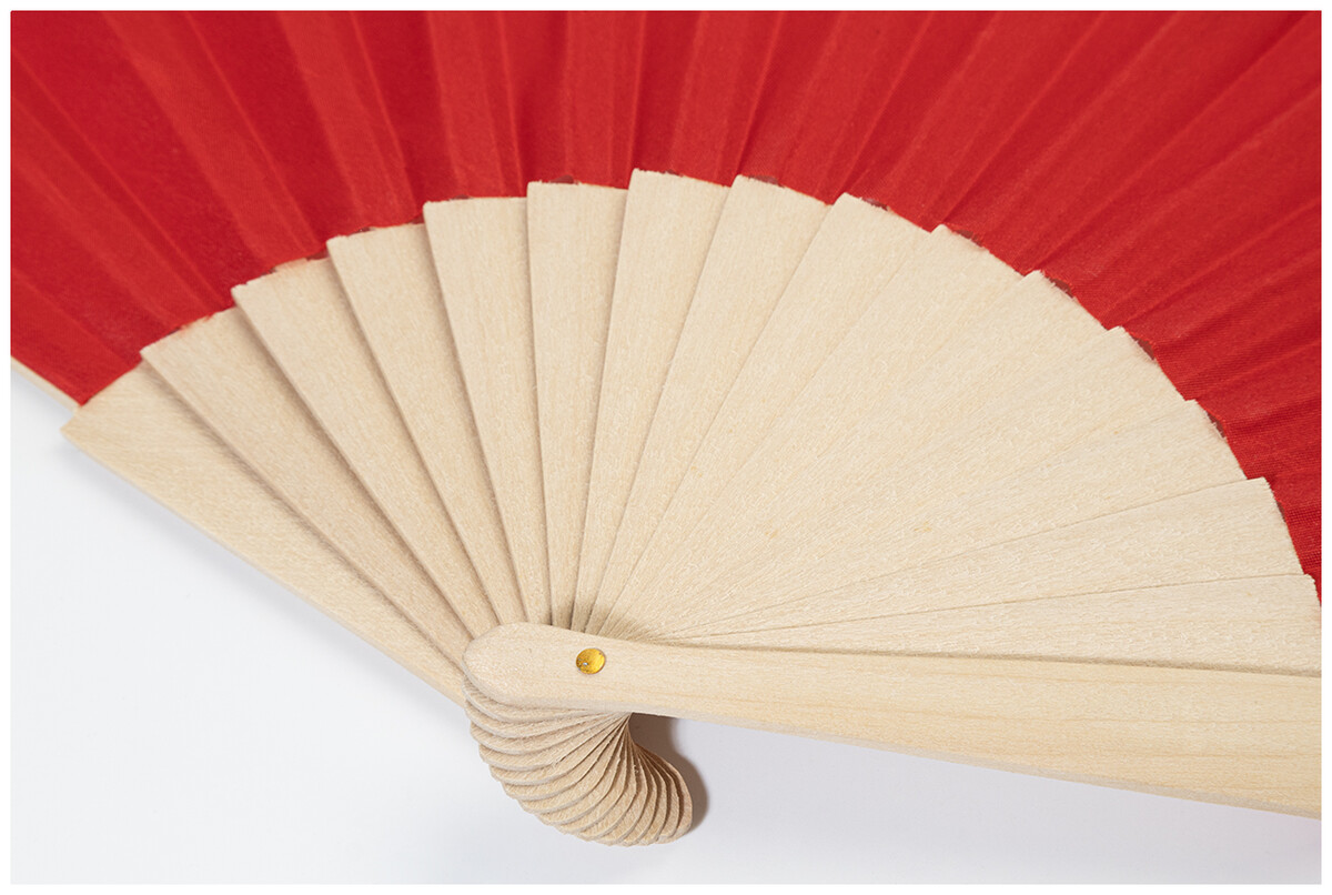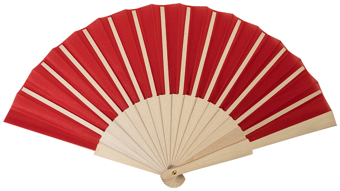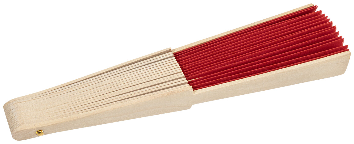Vějíř z RPET polyesteru s dřevěnými žebry.