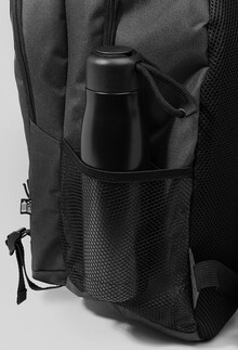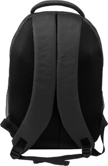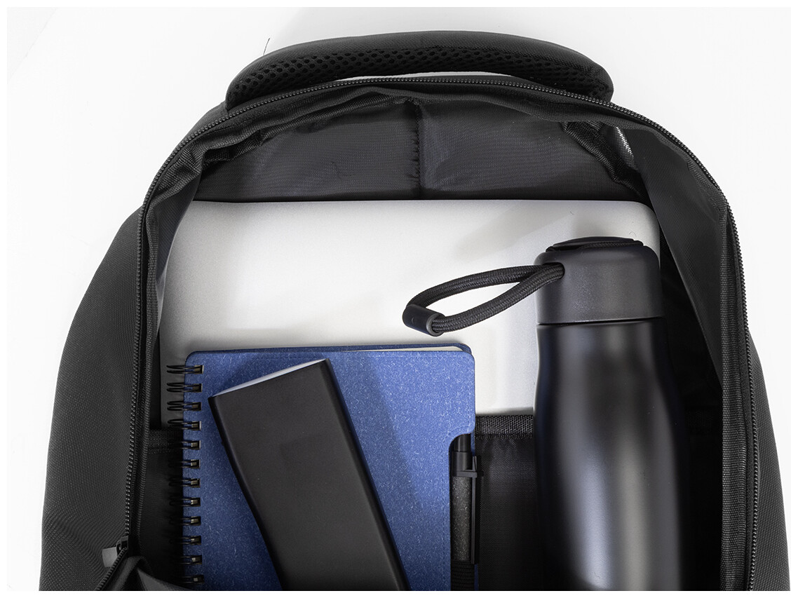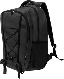 Outdoorový batoh z RPET s přihrádkami na zip a přední kapsou, polstrovanou přihrádkou na notebook (15"), síťovanými bočními kapsami a elastickými šňůrkami vpředu. S polstrovanými zády a ramenními popruhy. Polyester 600D RPET s výrazným štítkem RPET.
