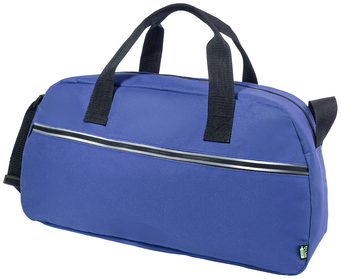 Sportovní taška z RPET s hlavní přihrádkou na zip, přední kapsou na zip s reflexními proužky a nastavitelným ramenním popruhem. Polyester 600D RPET s charakteristickým štítkem RPET.