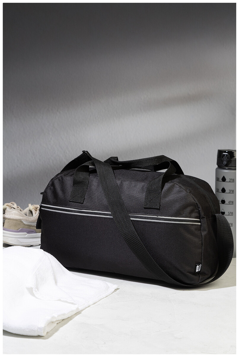 Sportovní taška z RPET s hlavní přihrádkou na zip, přední kapsou na zip s reflexními proužky a nastavitelným ramenním popruhem. Polyester 600D RPET s charakteristickým štítkem RPET.