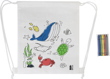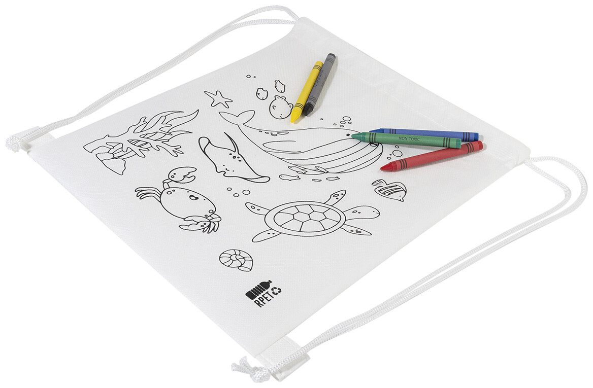 Vak se stahovací šňůrkou pro děti z netkané RPET tkaniny s 5 voskovkami na vybarvení.