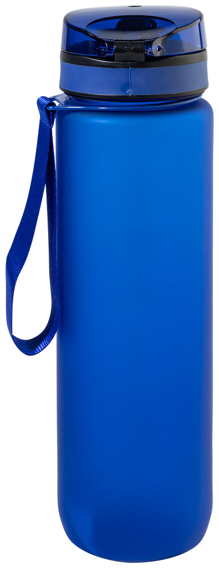 Sportovní láhev z matného RPET s motivačním objemovým a časovým značením, s automaticky otevíratelným odklápěcím víčkem s bezpečnostním zámkem a poutkem na nošení. 1000 ml. Bez BPA. Nevhodné pro sycené nápoje.