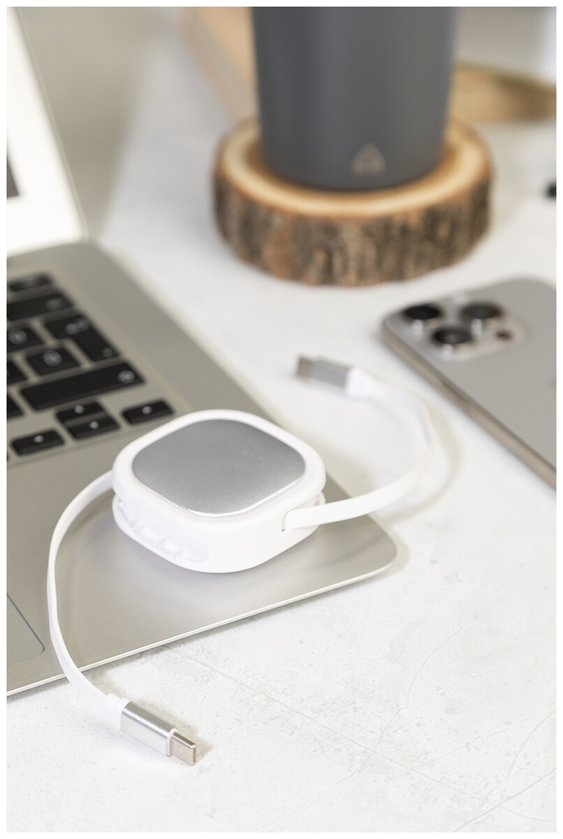 Teleskopický nabíjecí kabel USB-C/USB-C z recyklovaného ABS a recyklovaného hliníku. Podporuje rychlé nabíjení PD 60W.