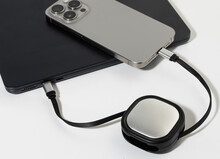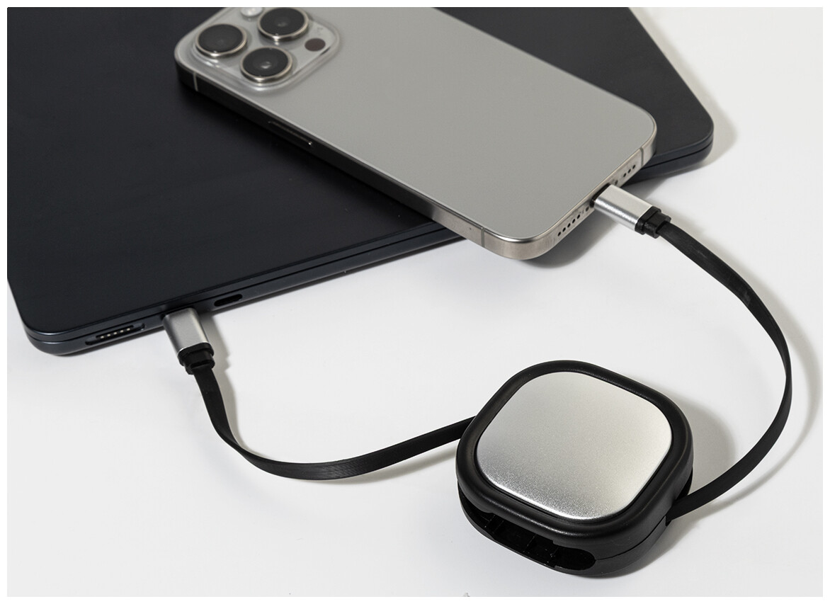 Teleskopický nabíjecí kabel USB-C/USB-C z recyklovaného ABS a recyklovaného hliníku. Podporuje rychlé nabíjení PD 60W.