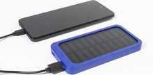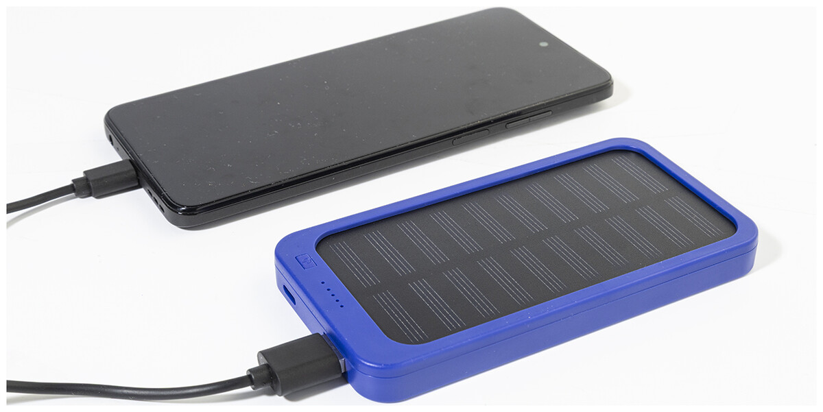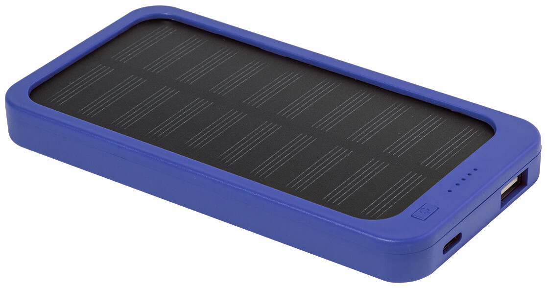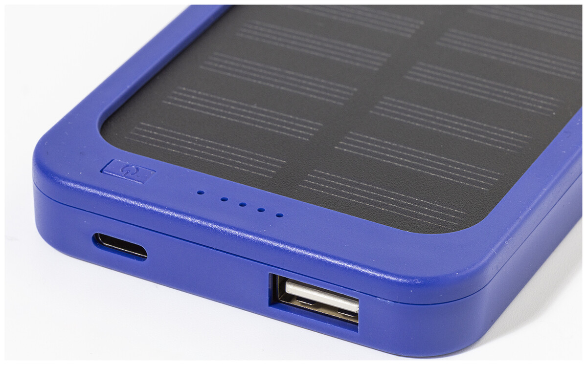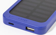 Power banka z recyklovaného ABS plastu s vestavěnou solární nabíječkou a baterií 4000 mAh. S 1 USB a 1 USB-C portem pro nabíjení. Vstupní port USB-C. Včetně nabíjecího kabelu USB.