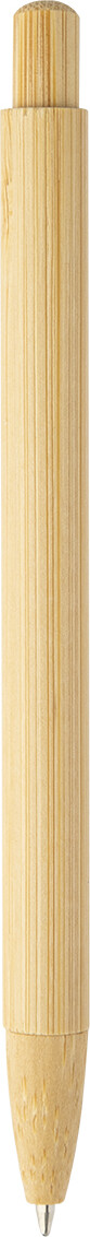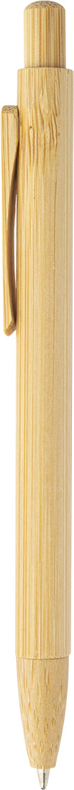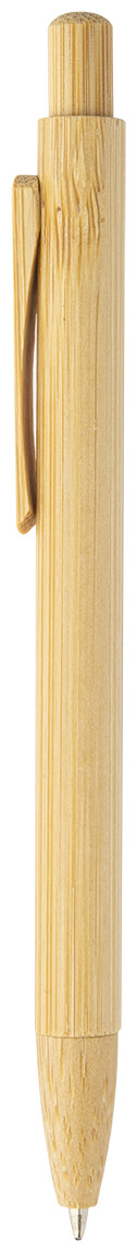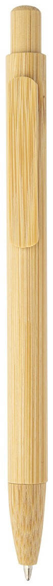 Kuličkové pero s bambusovým tělem, klipem, tlačítkem a špičkou. S modrou náplní.