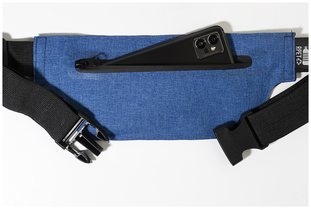 Úzká ledvinka z RPET s přihrádkou na zip a nastavitelným elastickým popruhem. 300D RPET polyester s charakteristickým štítkem RPET.