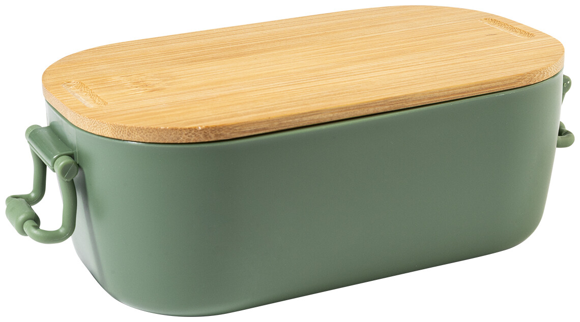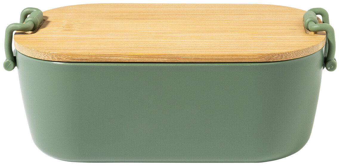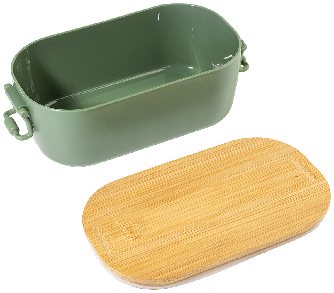 Box na jídlo z PP plastu s bambusovým víkem a uzávěrem na přezku, 1000 ml.