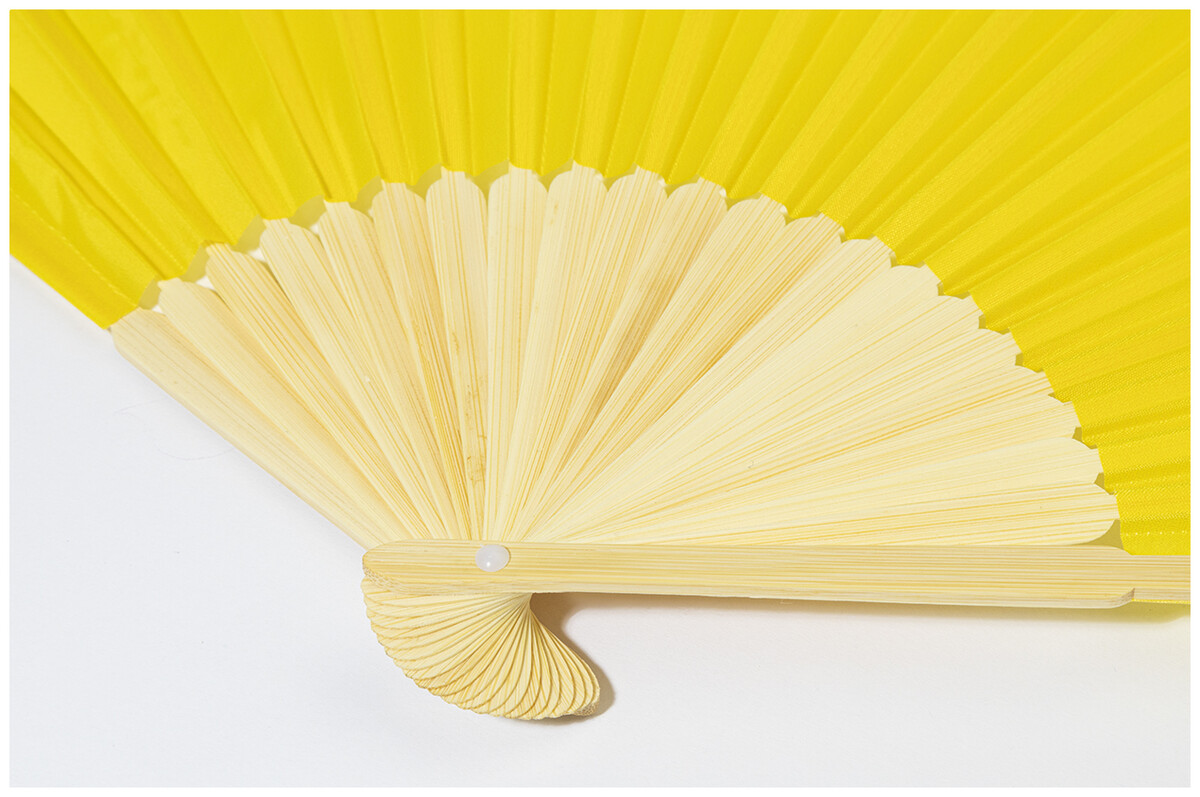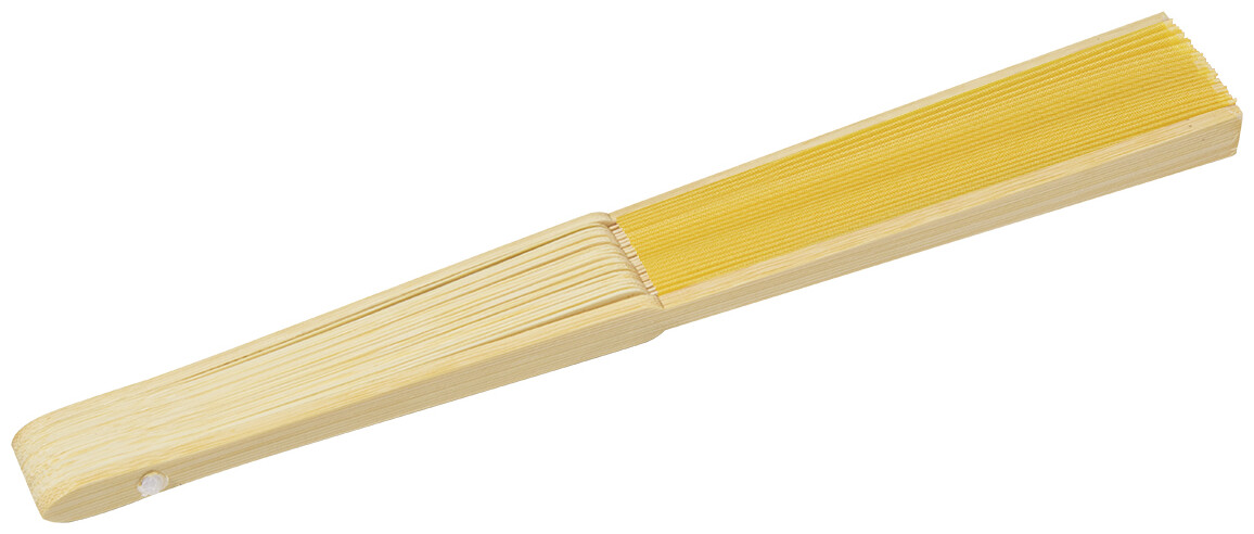 Vějíř z RPET polyesteru s bambusovými žebry.