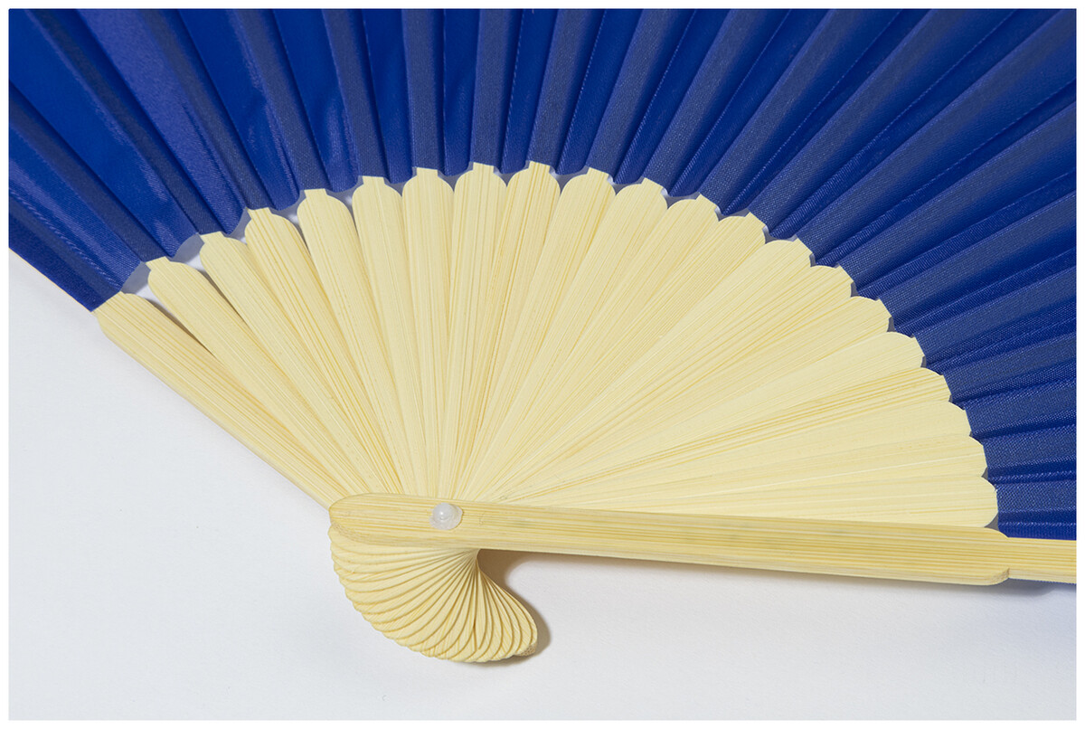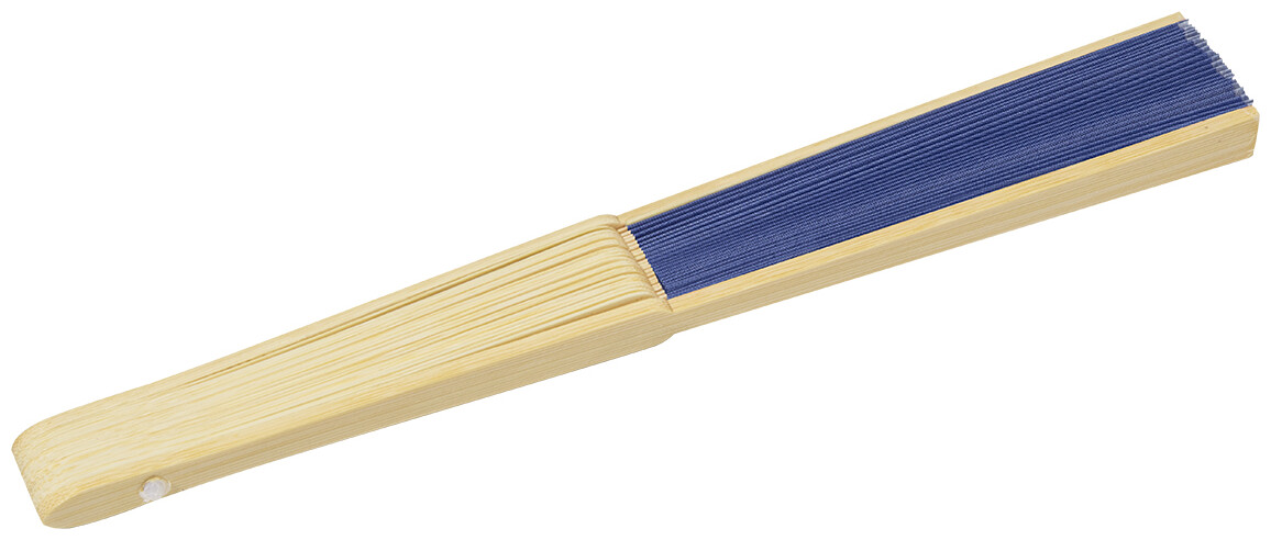 Vějíř z RPET polyesteru s bambusovými žebry.