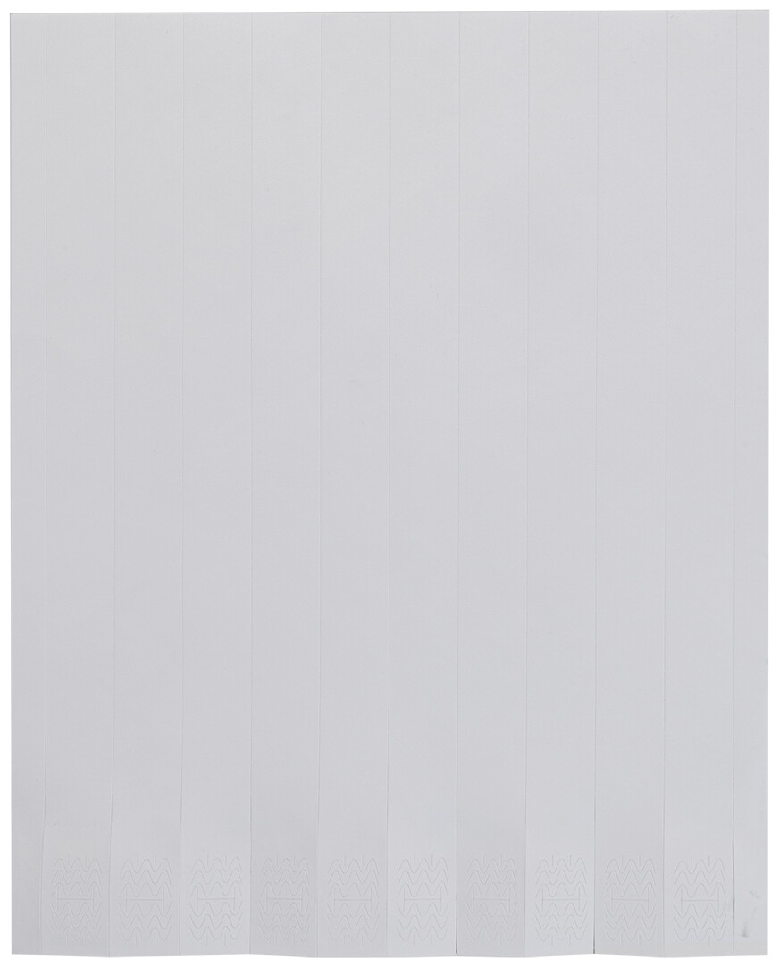 Jeden list 19 mm širokých tyvekových náramků s barevným potiskem (10 ks) s lepicím bezpečnostním uzávěrem a jedinečným číslováním. Cena zahrnuje digitální potisk na přední straně, nezahrnuje tiskovou přípravu. Min. mn.: 50 ks (500 náramků).