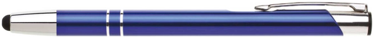 Modrá varianta oblíbené propisky ORIN, tentokrát s ukončením TOUCH. Lesklé tělo se dvěma stříbrnými proužky a stříbrnými doplňky.