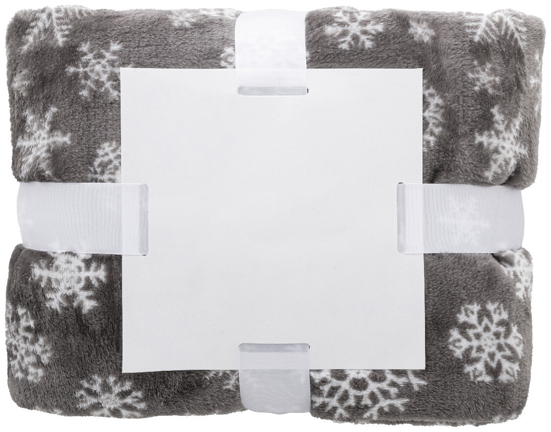 RPET flanelová fleecová vánoční deka, 260 g/m2. S potisknutelnou papírovou kartou a stuhou.