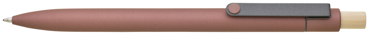BRANIX SOFT RE designová kovová propiskas matným soft povrchem z recyklovaného hliníku. Propiska je doplněna tmavým kovovým klipem a bambusovým cvakátkem. Velkoobsahová náplň píše modře.