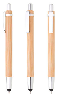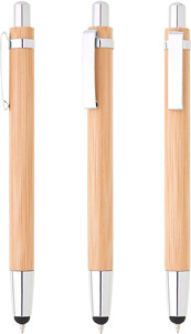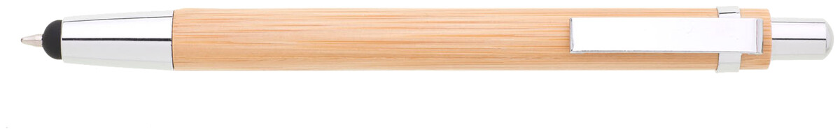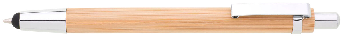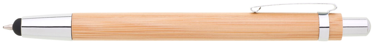 Bambusové tělo propisky TURAL Touch je doplněno stříbrnými doplňky, špičkou s touch koncem a kovovým rovným klipem.