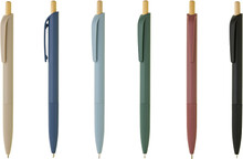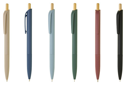 Plastové, kuličkové pero VERDANA RABS s barevným plastovým tělem a elegantním bambusovým cvakátkem. Náplň X-20 (115mm), modře píšící.