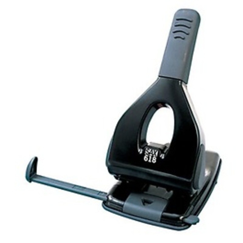 Velký stolní celokovový děrovač. Děrovač s kapacitou až 65 listů, průměr otvoru 5,5 mm, rozteč otvorů 80 mm. Úspora 50 % síly!!! Plastový příložník. Barevné provedení: černé.