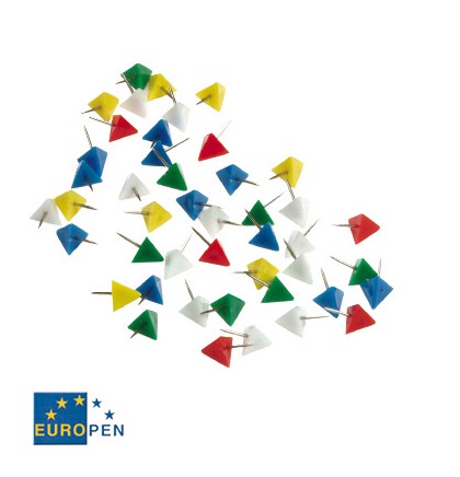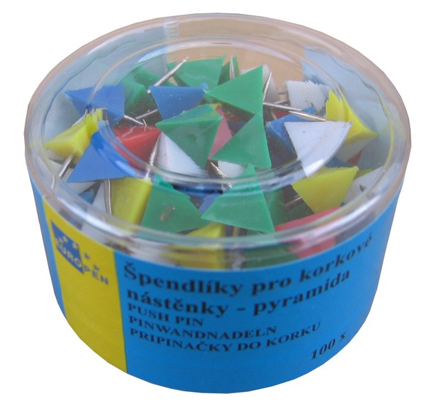 Špendlíky do korkových nástěnek Europen, tvar hlavičky: pyramida, balení: 100 ks.