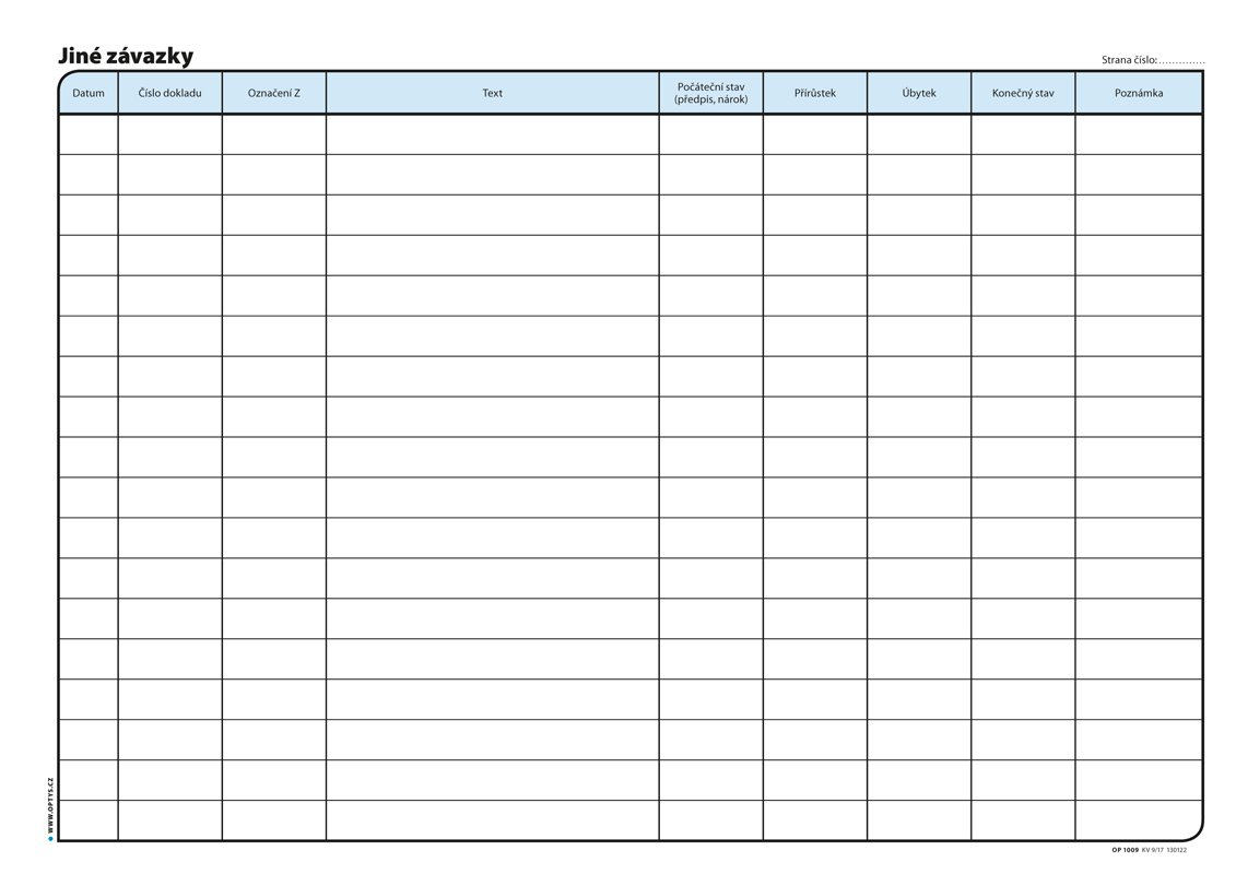 | 1709402 | KNIHA FAKTUR DOŠLÝCH OPTYS č. 9 | 77,44 Kč | 93,70 Kč | 1 ks | |||