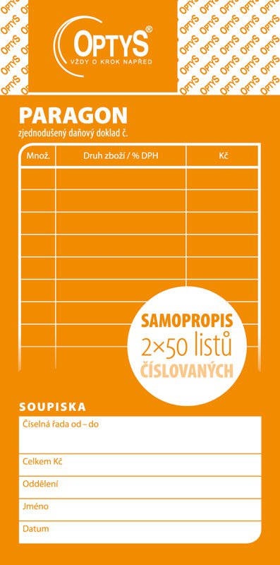 | 1709202 | PARAGON OPTYS 75x150/2x50 samopropisovací čísl. | 56,32 Kč | 68,15 Kč | 1 ks | |||