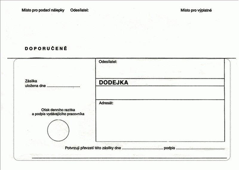 Poštovní obálky s dodejkou se mohou v pruběhu platnosti katalogu měnit dle legislativních změn.