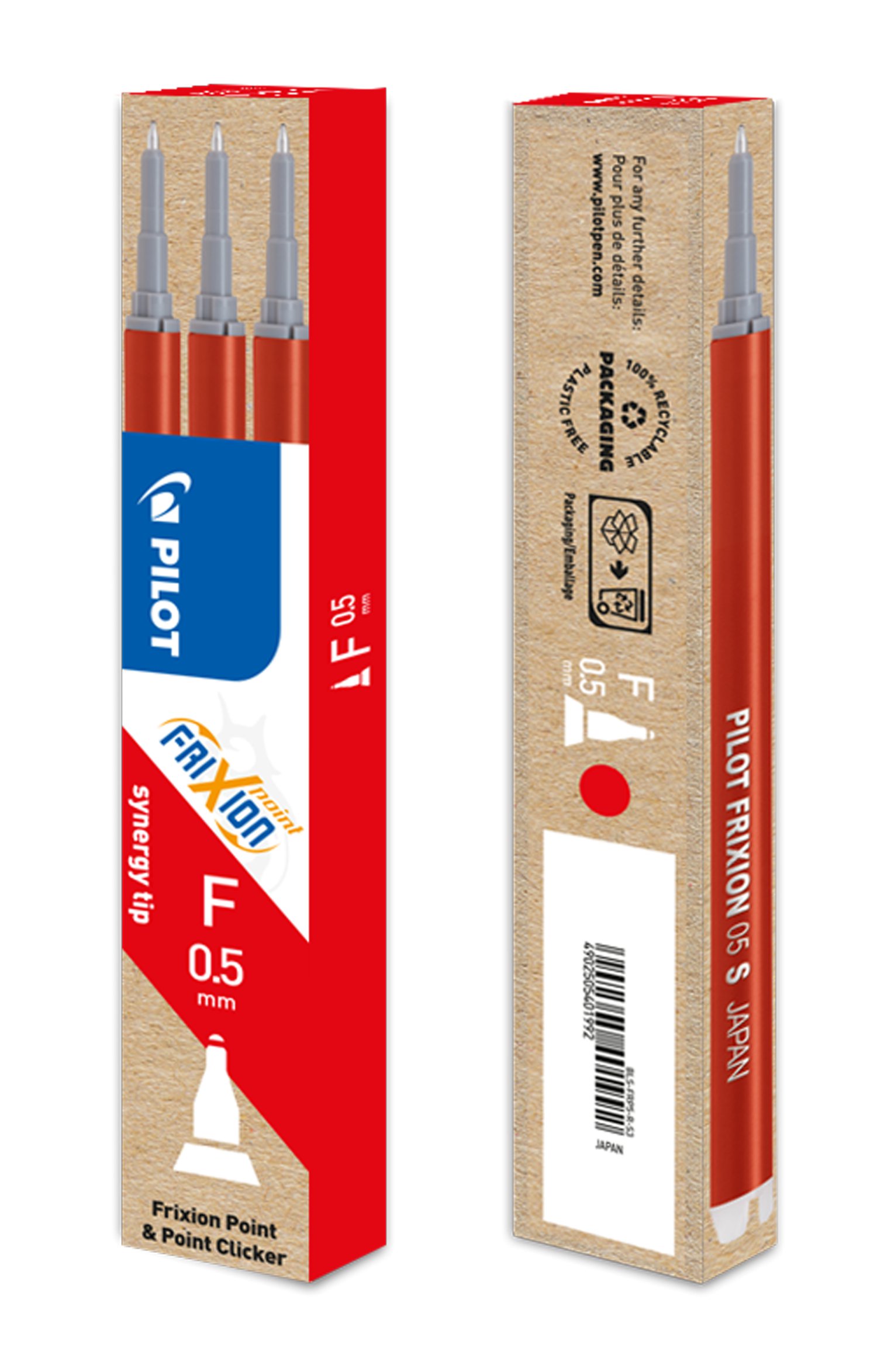 FriXion Point – náplň s jehličkovým hrotem, přepisovatelný inkoust. Balení obsahuje 3 ks. Barva: červená.