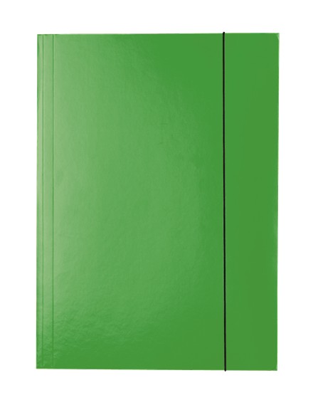 Kvalitní pevný karton z vnější strany lesklý. Prolisy na chlopních a hřbetu zvyšují jejich kapacitu pro uložení objemnějších dokumentů. Barva: zelená.