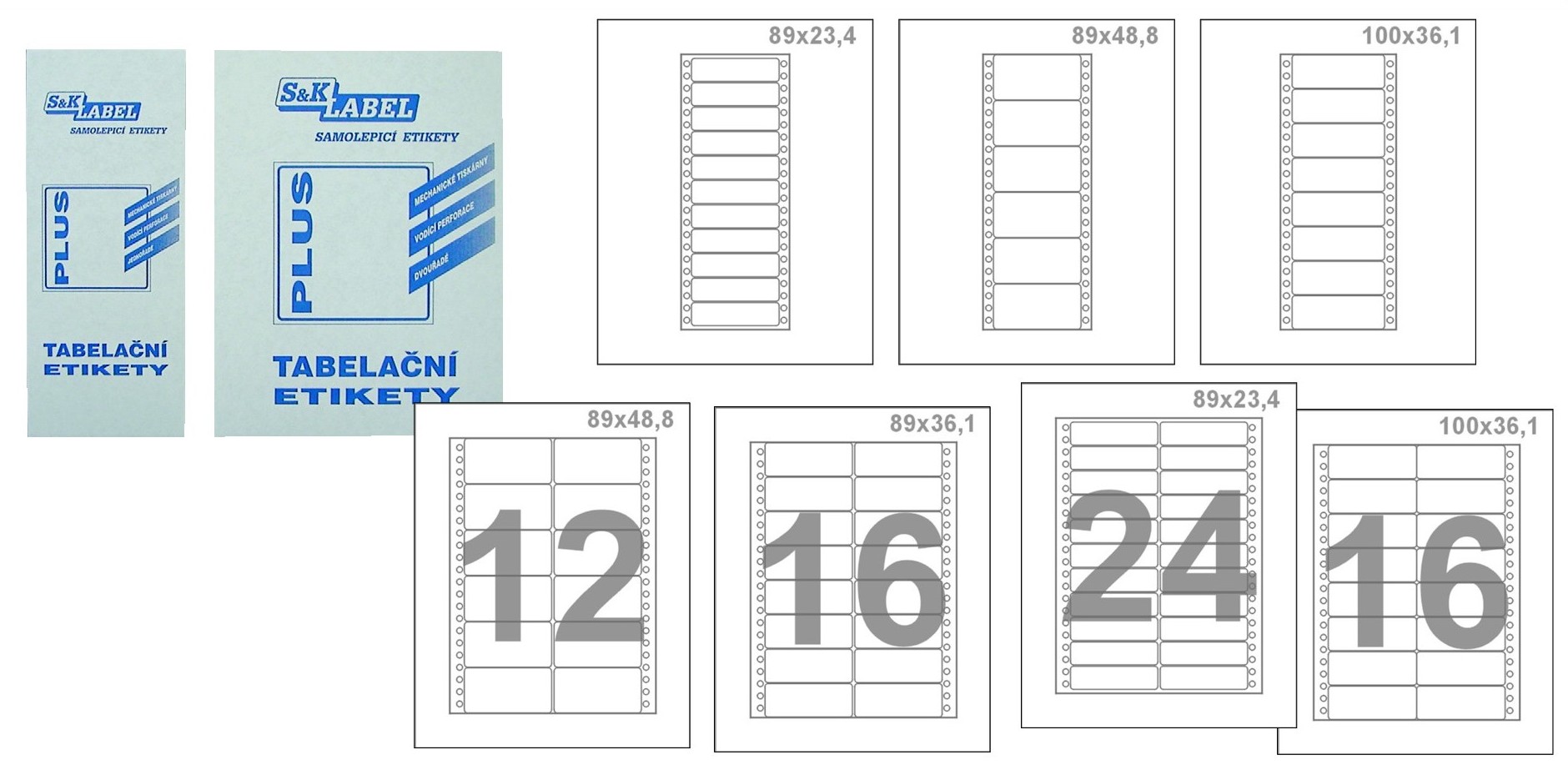 Etikety na podkladu o délce 12“ v nekonečném „traktorovém“ provedení, vhodné pro tiskárny s vodícím mechanismem. Etikety v bílé barvě, 1řadé