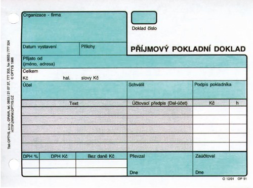 PŘÍJMOVÝ POKLADNÍ DOKLAD - stvrzenka