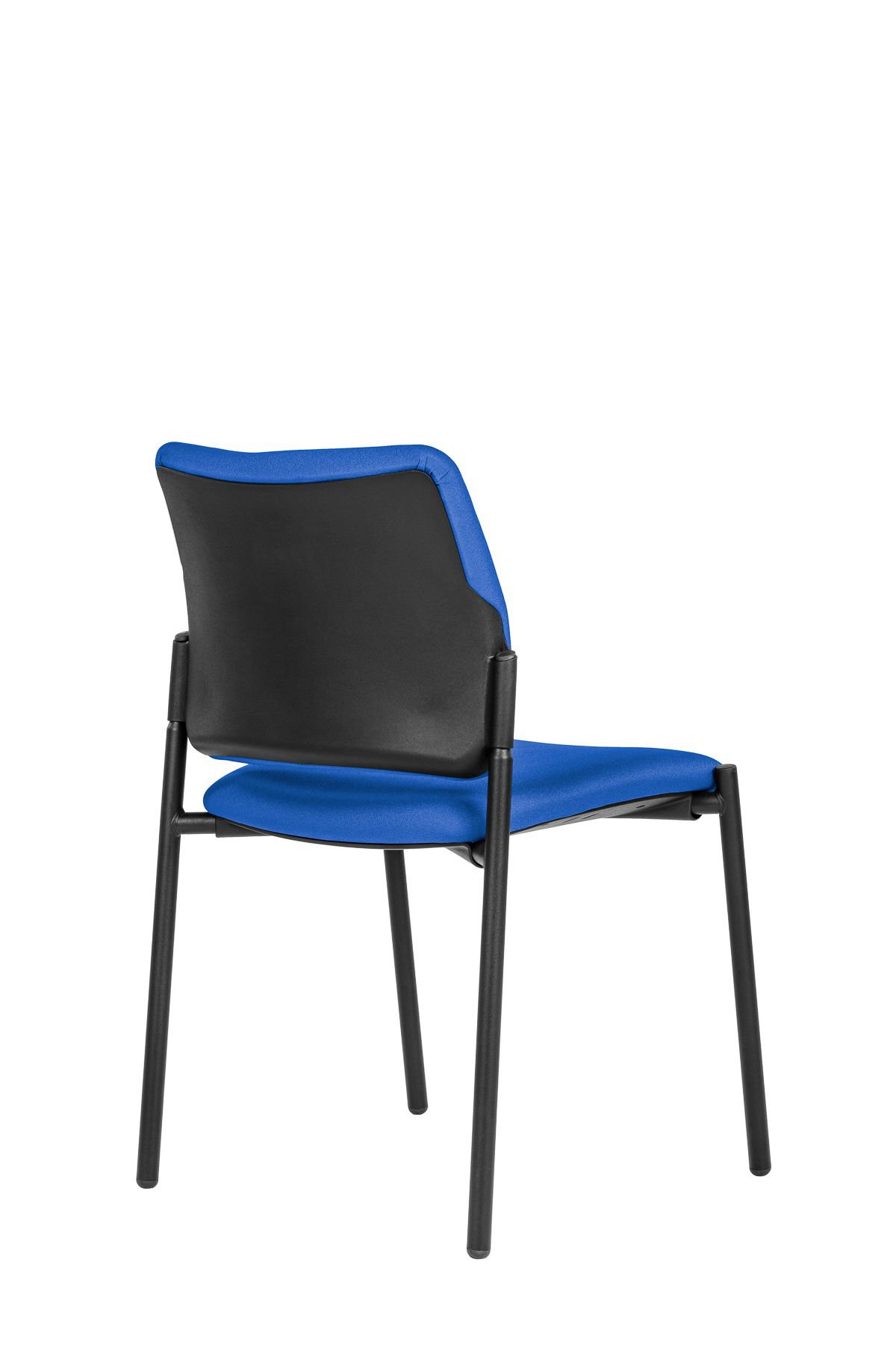 moderní jednací židle bez područek, čalouněný sedák a opěrák, ocelový rám lakovaný černě, stohovatelnost 5 kusů, nosnost 120 kg, záruka 36 měsíců, český výrobek