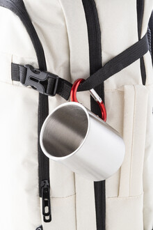 Nerezový hrnek s barevným karabinkovým uchem, 200 ml.
