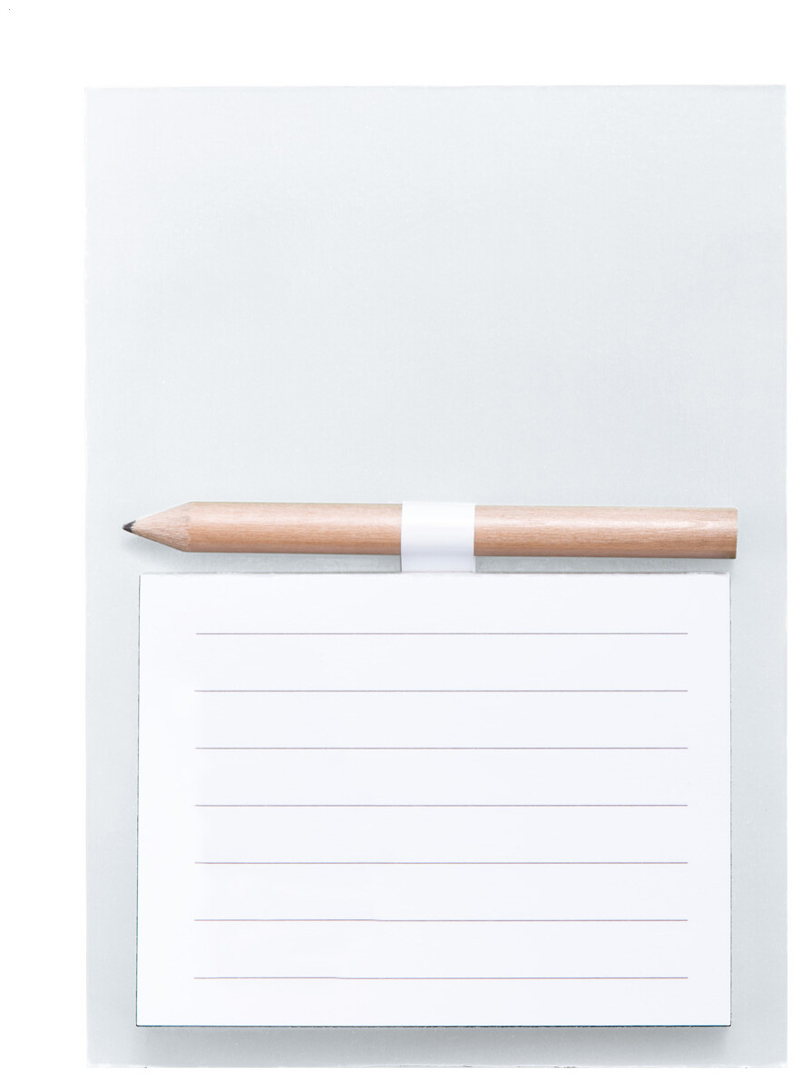 Barevná magnetka na ledničku se 40ti listým blokem a mini dřevěnou tužkou.