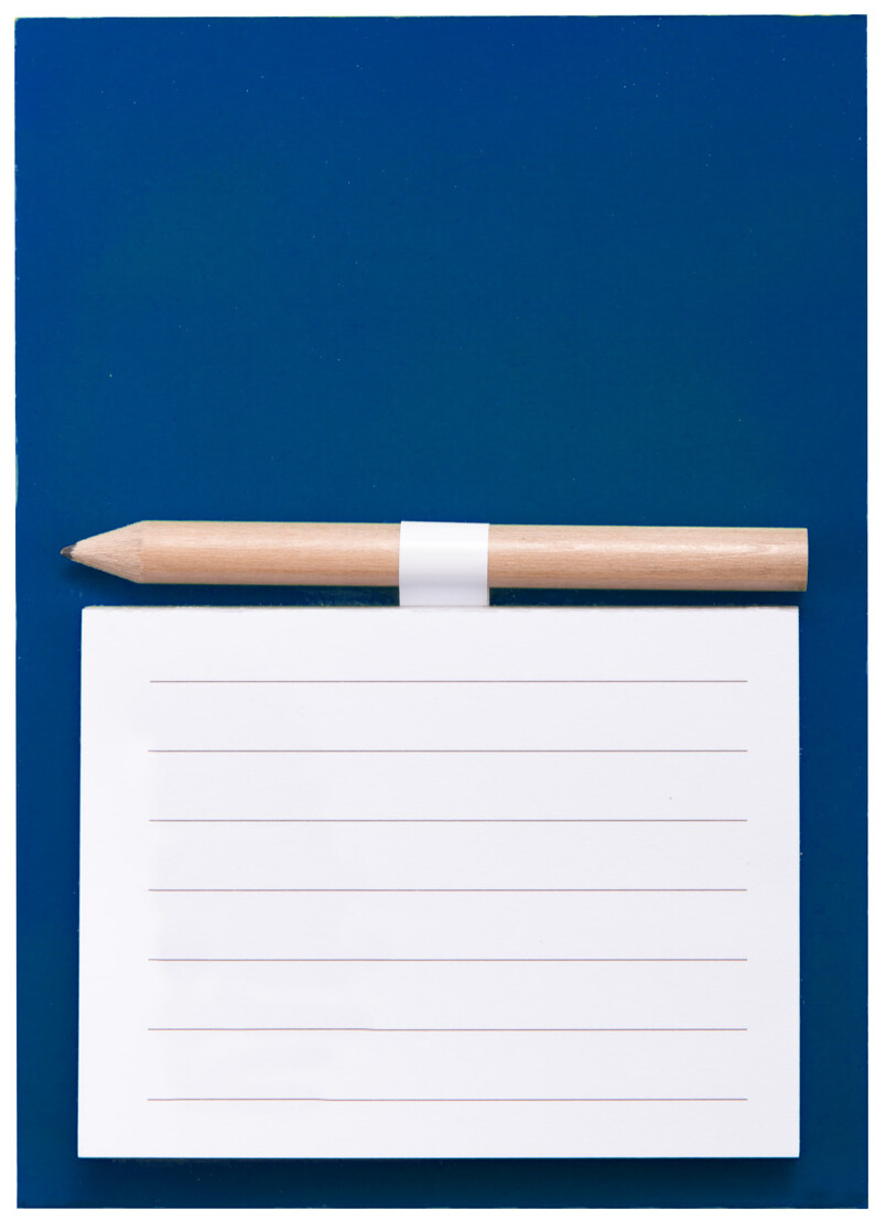 Barevná magnetka na ledničku se 40ti listým blokem a mini dřevěnou tužkou.