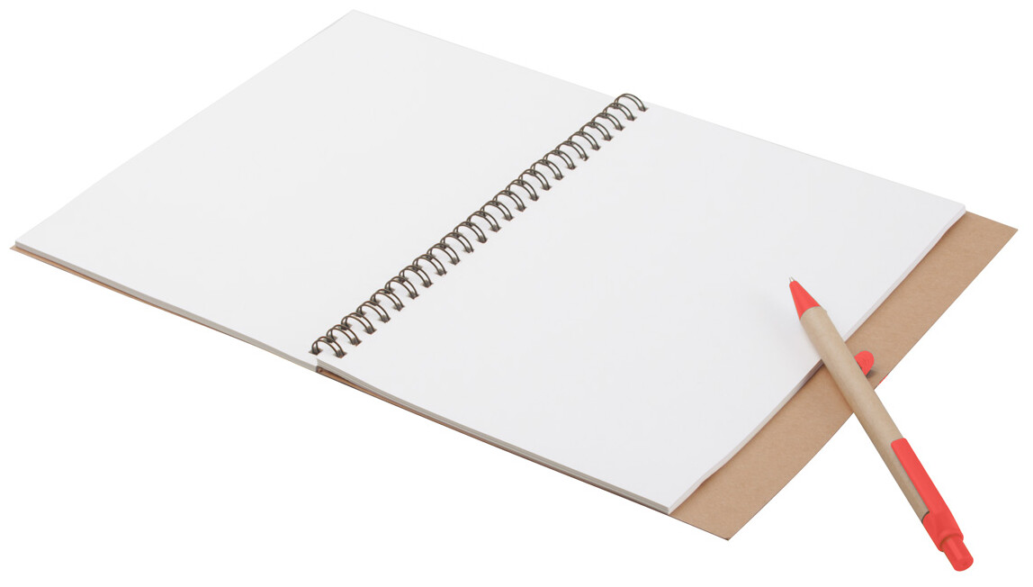 Nelinkovaný blok z recyklovaného papíru, se 60 listy a s papírovým kuličkovým perem.