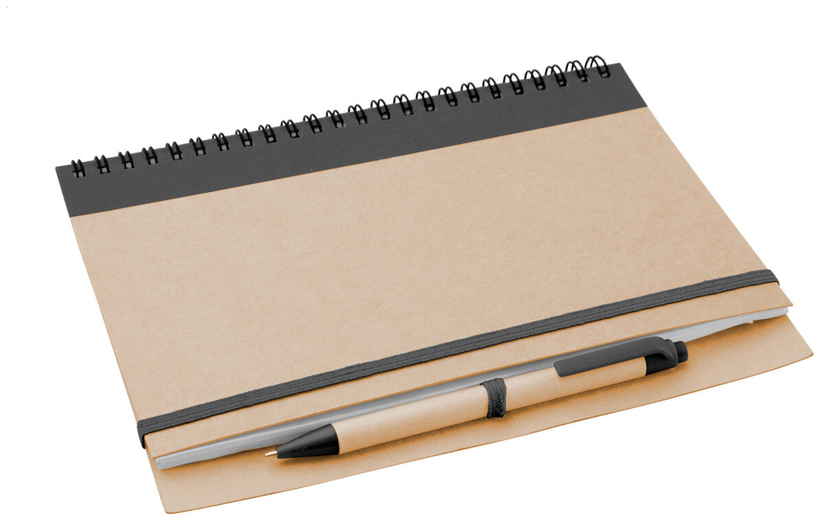 Nelinkovaný blok z recyklovaného papíru, se 60 listy a s papírovým kuličkovým perem.