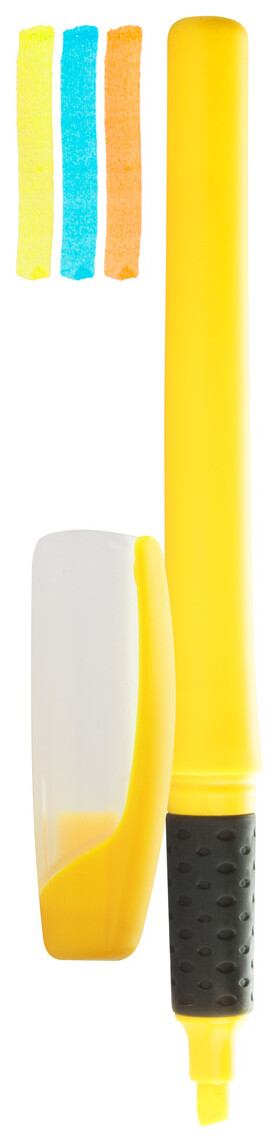 Plastový zvýrazňovač s víčkem a gumovým gripem.