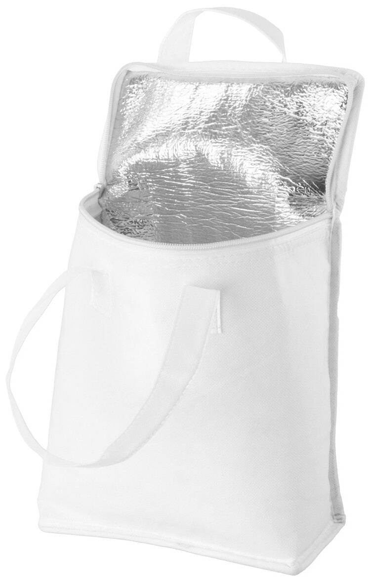 Chladící taška z netkané textilie na zip s hliníkovou vsadkou uvnitř. Pro 6ks plechovek 0,33 l nebo 3ks 0,5 l.