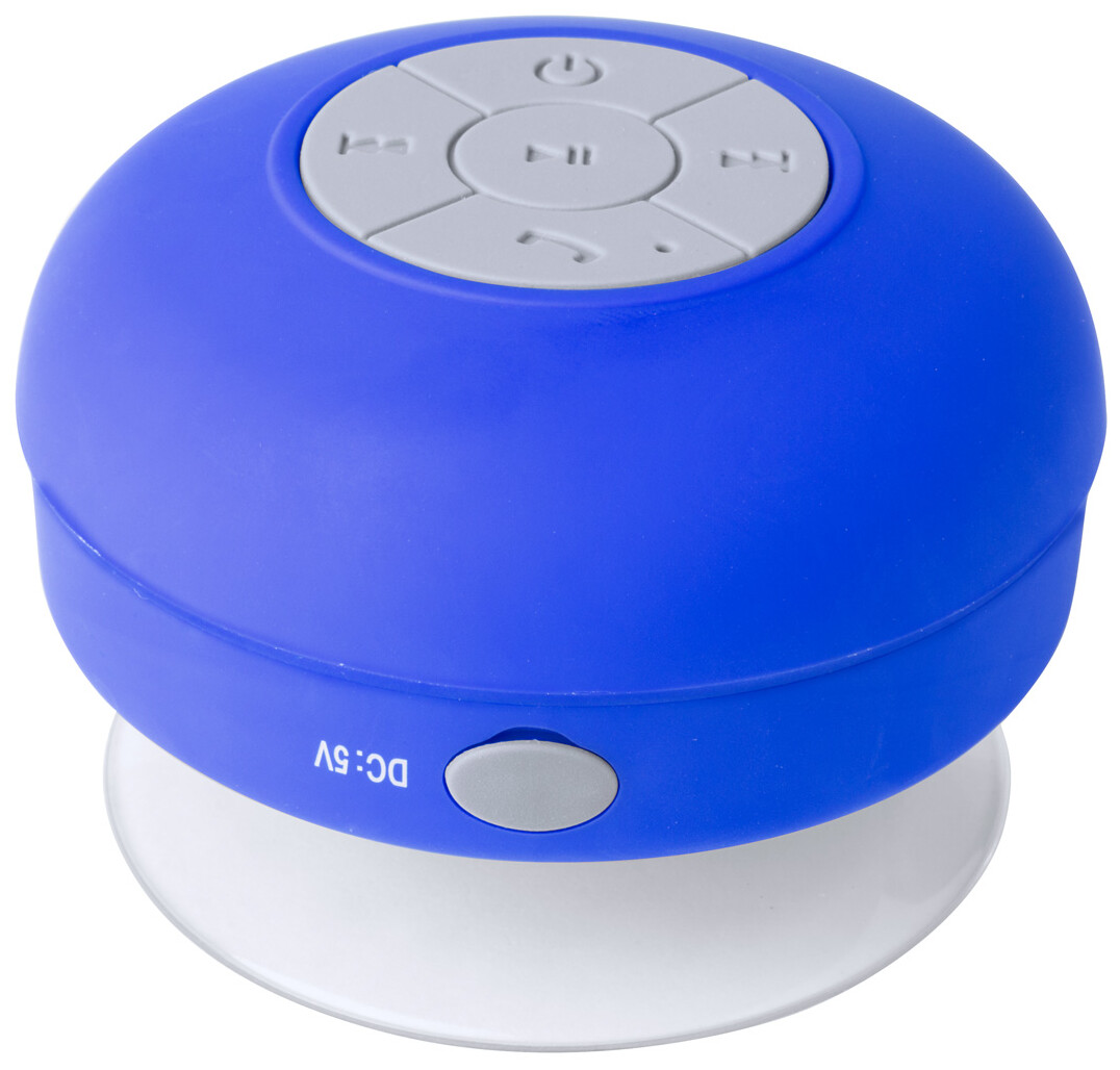 Bezdrátový reproduktor s pogumovaným krytem a velkou přísavkou. S funkcí hands-free volání a vestavěnou dobíjecí baterií. Včetně nabíjecího kabelu USB.