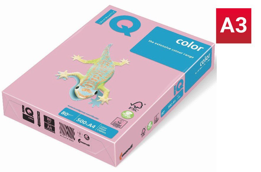 Barevný papír IQ OPI74, A3, 80g, pastelová plameňák, 1 balení, 500 listů. Papír velkého formátu A3.
